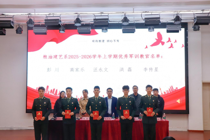 粮油建艺系于10月30日中午12:40在志学楼505举办2025年迎新工作总结暨表彰大会。系负责人冯训阳,系学工副主任徐春根以及其他师生代表齐聚一堂,共同回顾迎新与军训工作的精彩历程,表彰先进典范。