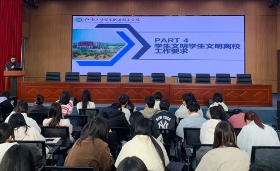 分管学生副主任和学生管理员结合实习安全典型案例,开展了实习安全教育专题讲解,希望同学们在实习期间严格遵守企事业单位的规章制度和操作规程,始终将安全放在首位,并对离校前宿舍安全、财物交接、防疫健康等作出具体安排,做到文明离校、安全到岗。