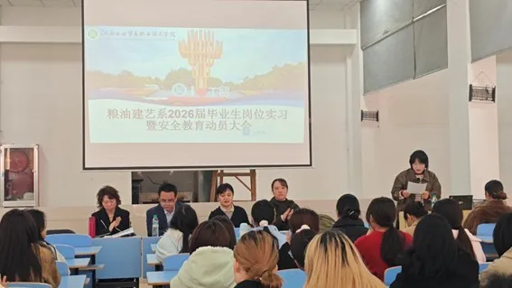 为扎实推进2026届毕业生岗位实习工作,2025年12月,粮油建艺系召开三场岗位实习暨安全教育动员大会,着力提升学生实习安全意识和岗位适应能力。系部相关负责人、就业创业学院副主任黄梅、全体实习指导教师、毕业班辅导员及学生代表参会。